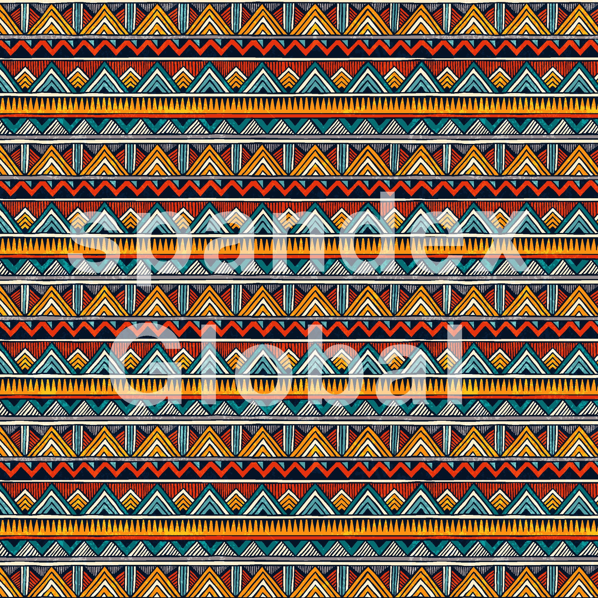 Embark on a journey of intricate design with our Colorful Tribal Spandex! This captivating pattern features dense horizontal bands filled with a rich array of tribal-inspired zig-zags, triangles, and dashes in a vibrant, earthy palette of oranges, blues, and reds. Perfect for expressive activewear, bohemian fashion, or any project that celebrates diverse cultural aesthetics.