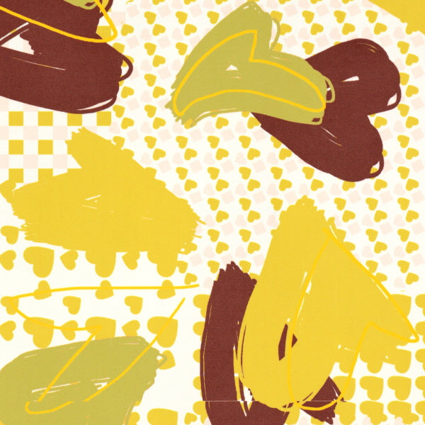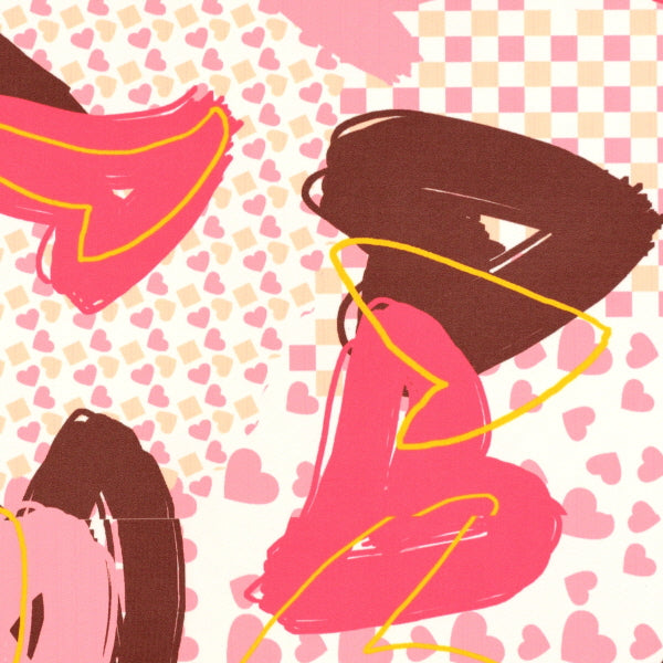 This unique Hand Painted Heart Print fabric is a celebration of expressive, artistic style. The pattern features abstract, almost graffiti-like hearts and shapes in contrasting colors. The bold, hand-painted look is a fresh take on a classic symbol. The fabric is available in two striking color palettes: a vibrant mix of pink and brown with yellow accents, and another with shades of yellow and brown. This bold fabric is ideal for creating statement pieces that are truly one-of-a-kind.