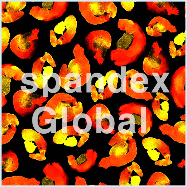 Unleash your wild side with a splash of color! This Neon Paint Leopard Print features a bold and fiery watercolor design of leopard spots in vivid shades of orange, yellow, and red. Set against a deep black background, this energetic print is perfect for creating dynamic activewear or standout fashion pieces that demand attention.