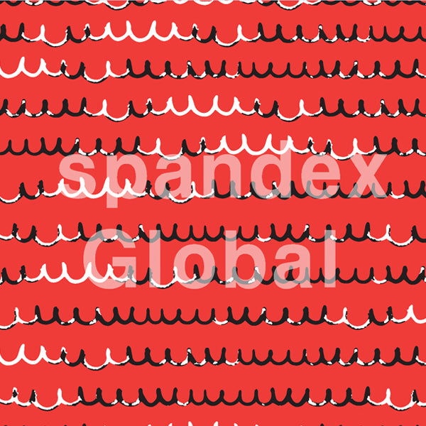 This fun and vibrant pattern features playful, hand-drawn waves in contrasting black and white against a striking red background. Perfect for adding a bold, energetic, and whimsical touch to activewear, swimwear, or any creative project.