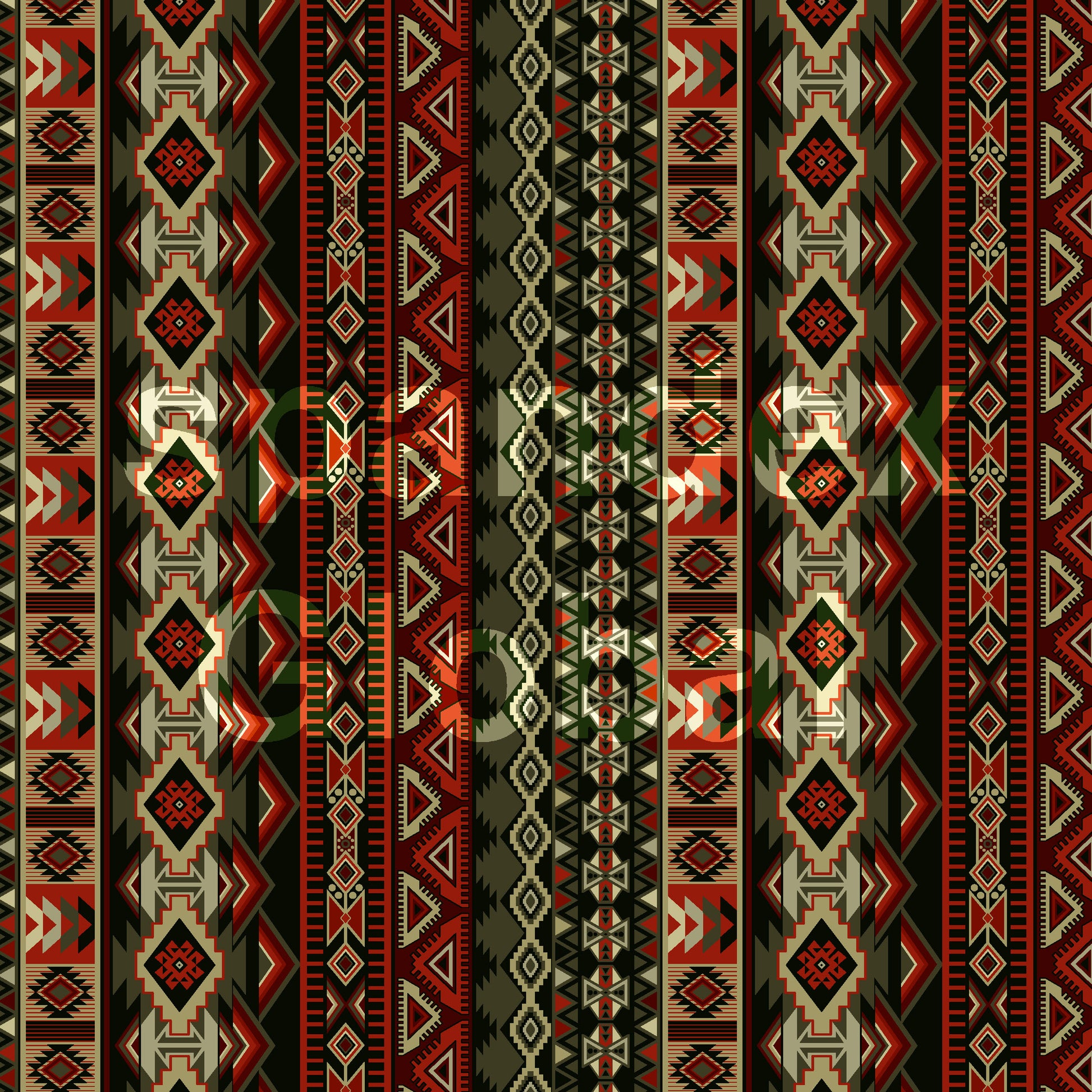 Embrace rich, earthy aesthetics with our Southwestern Sunset Tribal Spandex! This vibrant pattern features intricate vertical bands filled with classic tribal motifs and geometric shapes in a warm palette of reds, oranges, greens, and browns. Perfect for bohemian-inspired activewear, unique apparel, or projects with a global, handcrafted feel.